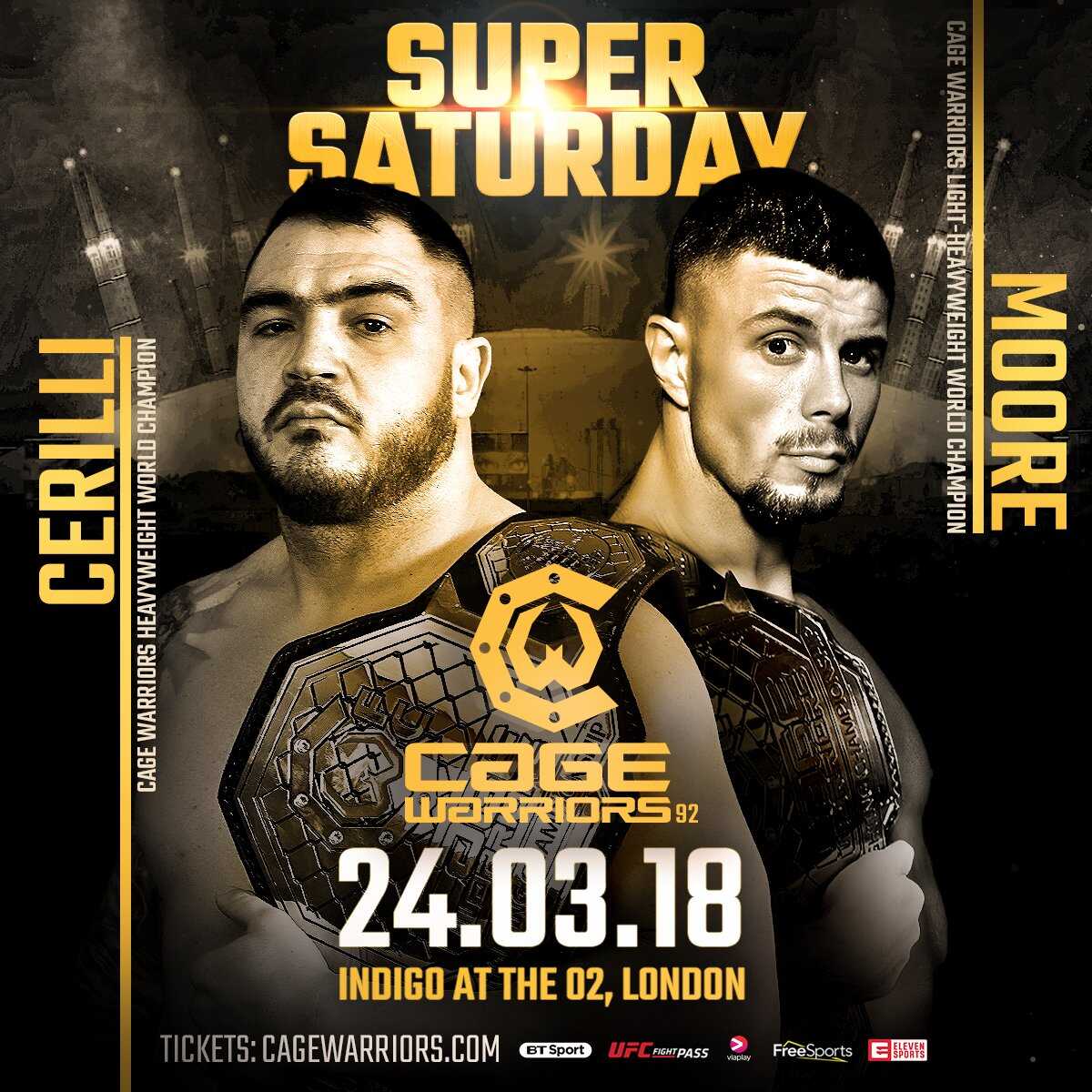 Cage Warriors 92- Maincard 2 London March 24th - 2018